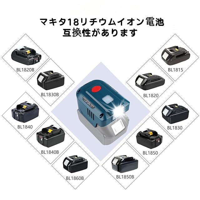 【マキタ18Vバッテリーに対応】このインバーターは、BL1860、BL1860B、BL1850、BL1850B、BL1840、BL1840B、BL1830、BL1830B、BL1815B、BL1825B、BL1835B、BL1845B、LXT400などのマキタ18Vリチウムバッテリーに対応しています。