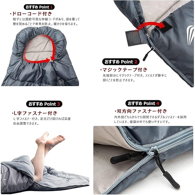 商品名:BISINNA 寝袋 ワイド ねぶくろ 封筒型 シュラフ 洗濯可 キャンプ 登山 アウトドア 車中泊 来客用 収納便利 匂いがフリー 肌触り良い 幅100cmx奥行き230cm 防水 春 夏用1.55kg(快適温度15℃)グレー
