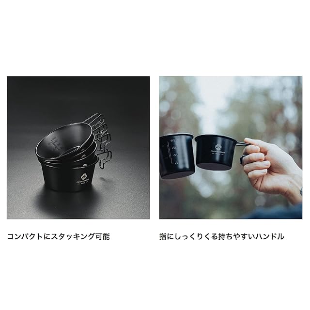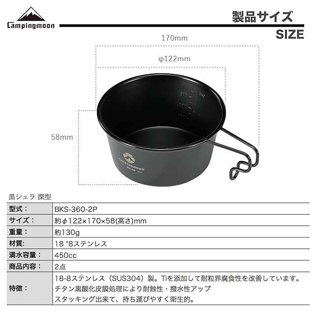商品名:キャンピングムーン(CAMPING MOON) キャンプ用 コップ ステンレス シェラカップ 黒 深型 黒シェラ 360ml 2点セット BKS-360-2P