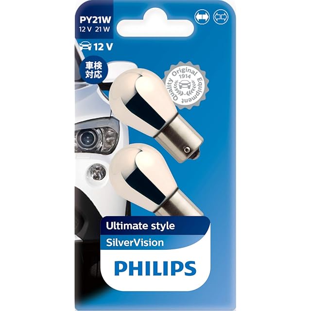 Philips(フィリップス) 自動車用バルブ&ライト 白熱球 ウインカー S25(PY21W) 12V 21W シルバーヴィジョン アンバー ステルスタイプ 2個入り 車検対応 PHILIPS SilverVision 12496SVB2
