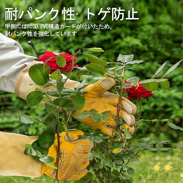 商品名:[Vgo...] ガーデン手袋 ロングガーデングローブ 牛革 園芸手袋 タッチパネル対応 耐磨耗 園芸用手袋 長袖 草刈り バラトゲ防止 CA9659(M,イェロー+グリーン)