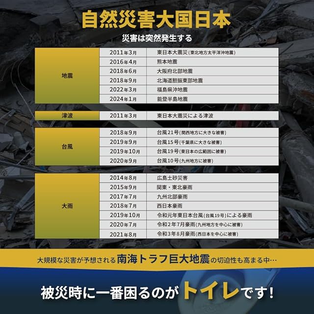 ✅【断水に備える】災害は突然発生します。地震や台風、津波、大雨、ゲリラ豪雨、予想出来ない災害が多発する中、水や食料の供給不足もさることながら、断水や水不足も非常に大きな問題です。水が使えないことはトイレも使えないことに直結するため、非常用簡易トイレの備蓄は重要です。ピタッとトイレは災害時のトイレ問題を解決、今すぐ備えをお勧めします。