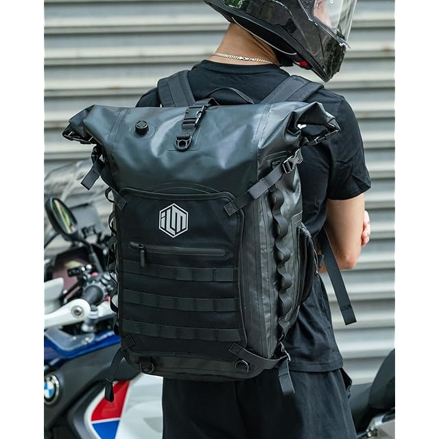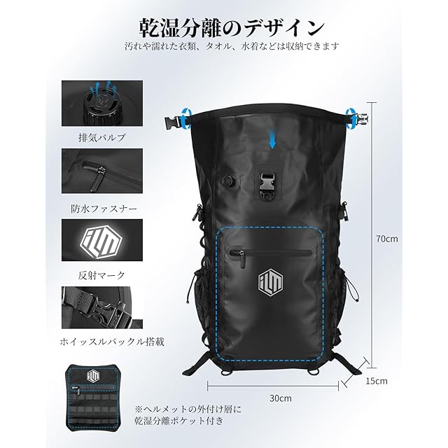 商品名:[ILM] ヘルメットバッグ バイク用リュック バックパック 防水バッグ 大容量40L アウトドア ライティング 登山 渓流釣り キャンプ 旅行 遠足 防災 ハイキング スポーツ 通学通勤 多機能 メンズ(ブラック)
