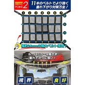 ✅【アシストストラップ3個に対応】今までの天井ネット(ルーフネット)では、アシストストラップが4個ないと取付けれなかった。そんな悩みにアシストストラップ3個でも取付け可能に改良いたしました。専用ストラップをサンバイザーに取付けることでアシストストラップ3個でも天井ネットを取付け可能に!