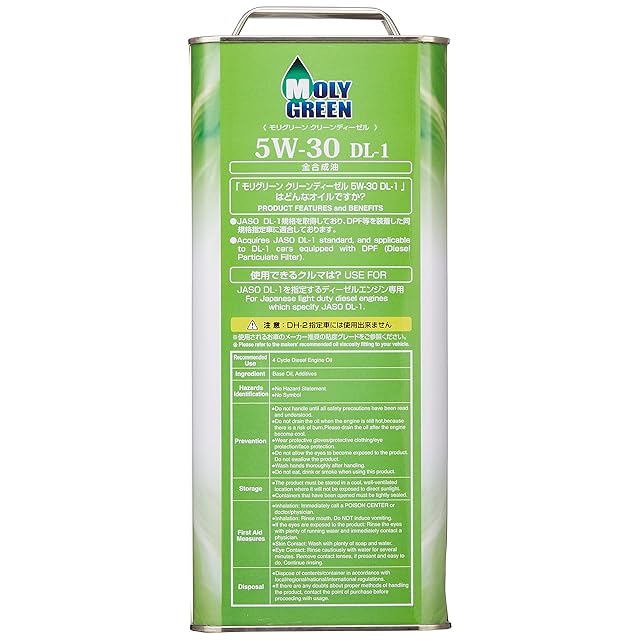 商品名:モリグリーン(Moly Green) エンジンオイル クリーンディーゼル 5W-30 DL-1 4L 全合成油 0470125