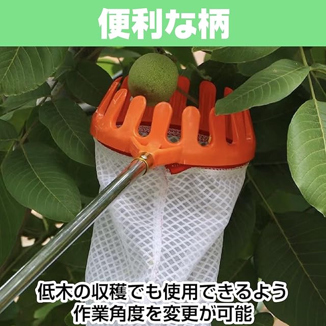 【非常に丈夫で長持ちする設計】 このフルーツピッカーは、強固なプラスチック製で非常に丈夫です。高品質な炭素素材を使用しており、耐久性が高く、長期間使用することができます。収集袋付きで、収穫した果物を簡単に確認できるメッシュ素材の袋を採用しており、果物の収穫作業がスムーズに行えます。