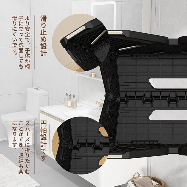 <p>BLACKSPACEの折りたたみ踏み台、折りたたんだときの幅はわずか3cm!収納場所にも困りません♪</p> <p>簡単に広げればどこでも使える、便利な折りたたみ踏み台♪</p> <p>底に滑り止めゴムを配置しスツールから、天板は凹凸粒子でデザインされ、快適性に影響を与えずに天板の滑り止め効果を強化しました♪</p> <p>特殊な蜂の巣構造と安定した二重三角形の構造、丈夫で壊れにくく、耐荷重は150kgまで、大人が乗っても丈夫な脚立 ♪</p> <p>多機能で幅広い用途、室内 玄関 洗面所 倉庫 公園 釣り キャンプなどの場所で使用できます。洗車、エアコンの掃除、幼児の訓練などに最適です♪</p> <p>■■■【商品情報】■■■</p> <p>サイズ(約)</p> <p>[使用時] 幅33×奥25×高30 cm、天板サイズ:30×22 cm</p> <p>[収納時] 幅33×奥3×高45 cm</p> <p>材質</p> <p>[本体] ポリプロピレン</p> <p>[滑り止め] ゴム(TPR)</p> <p>重量(約)</p> <p>1.08kg</p> <p>耐荷重(約)</p> <p>150kg</p> <p>※耐荷重の数値はSGCの測定値であり、値ではありませんのでご注意ください。</p> <p>ご注意:</p> <p>※折りたたむ際は結合部やプレートの間に指を挟まないようご注意ください。ケガの原因となります。</p> <p>※乳幼児の使用は手の届かない場所で保管してください。</p> <p>※不安定な場所での使用は転倒等の事故の原因となりますのでご注意ください。</p>