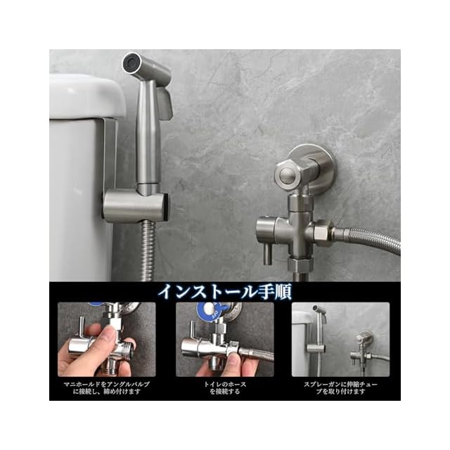 商品名:トイレ掃除用 ノズルセット シャワーヘッド 便器洗浄 高水圧 洗浄セット 分岐水栓付き ステンレス巻ホース 掃除 節水 水流調整 ハンドヘルドシャワー トイレ用 浴室用 屋外用 多機能 1.5m