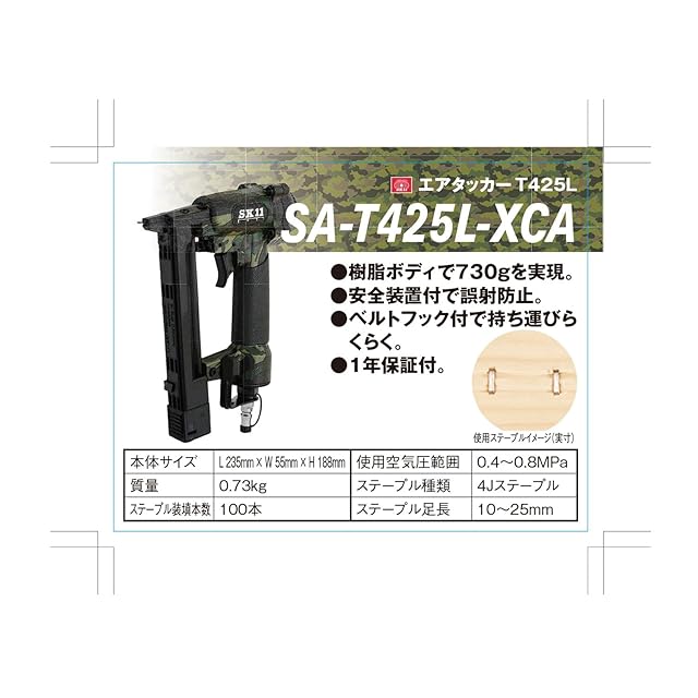 商品名:SK11(エスケー11) エアタッカー 肩幅4mm 足長10~25mm SA-T425L-X1CA 4Jステープル用 迷彩柄