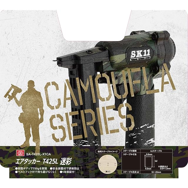 SK11(エスケー11) エアタッカー 肩幅4mm 足長10~25mm SA-T425L-X1CA 4Jステープル用 迷彩柄