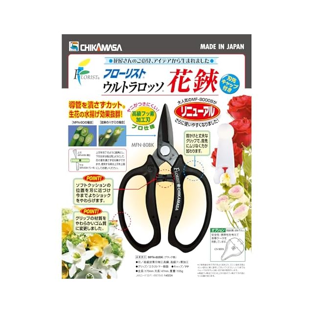 近正(CHIKAMASA) フローリスト ウルトラロッソ 花鋏 全長170mm 刃先キャップ付き MFN-80BK 日本製
