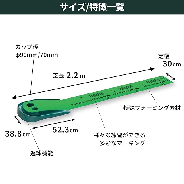 芝長:2.2m 芝幅:30.0cm カップ径:(大)90㎜・(小)70mm