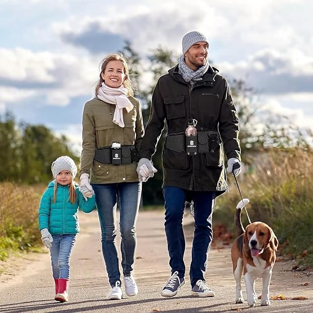 水筒ホルダー付きファニーパック・ランニングベルトは、ハイキング、犬の散歩、ランニングなど、あらゆるアウトドア・アクティビティを楽しむ人に最適な製品です。直径8cm×高さ25cm以下のボトルに対応するボトルホルダーが付属しています。その他、携帯電話ホルダー、便利なサイズの3つのファスナー付きポーチ、鍵などの必需品を入れる独立した場所などがあります。ウエストサイズ70cm~128cmに対応し、ランニング中もしっかりと固定されます。手に何かを持つのが嫌いな人や、ズボンにポケットがない人に素晴らしい解決策を提供するこの製品に、顧客は全体的に満足している。このパックは男性にも女性にも適しており、価格も手頃だ