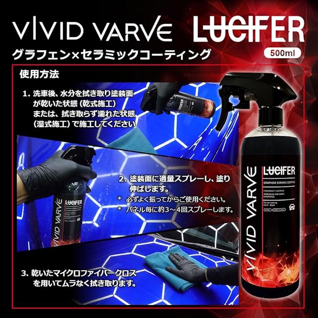 VIVID VARVE LUCIFER グラフェン セラミックコーティング こだわり抜いた定着スピードと強力な撥水性能 魅惑の艶を付与 チュベローズの香り 日本産 ビビッドヴァーヴ ルシファー 洗車用品 カー用品 500ml