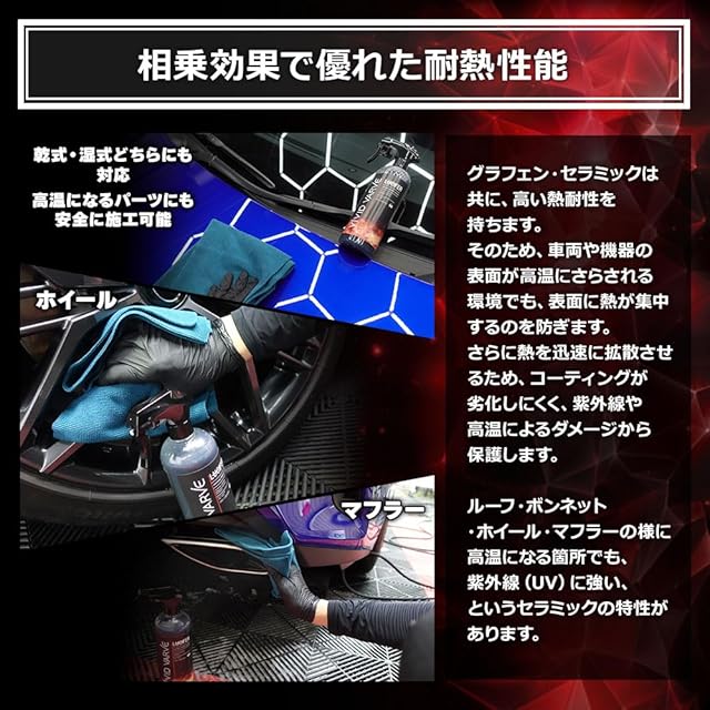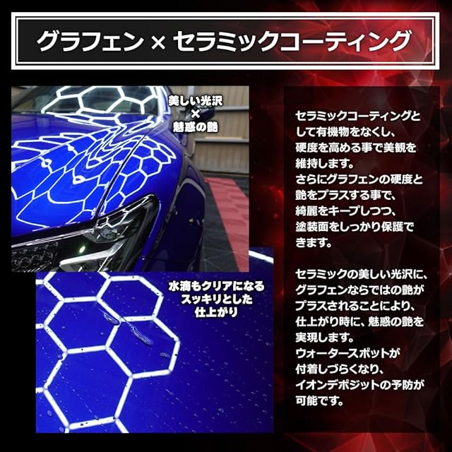 塗装面に高い撥水性・スリック性能・魅惑の艶を付与するグラフェン配合の車用セラミックコーティング剤です。
