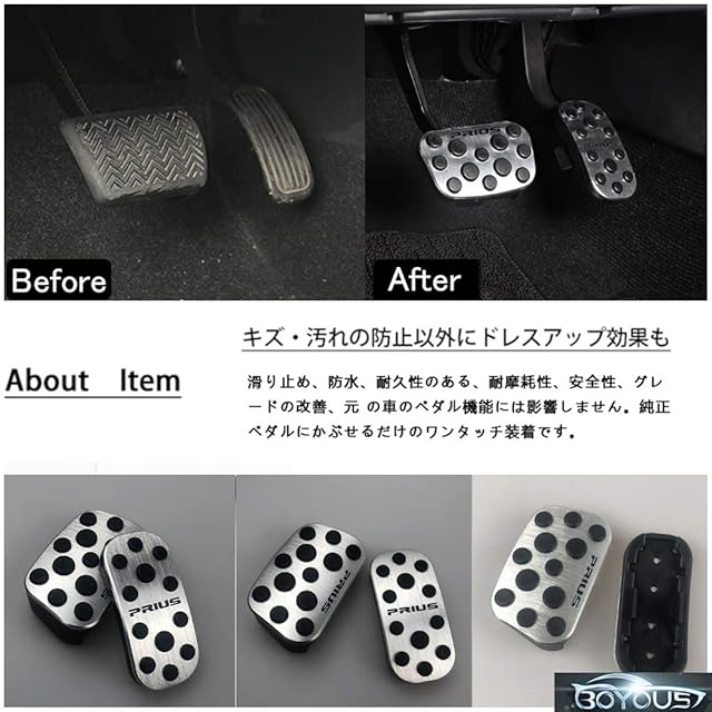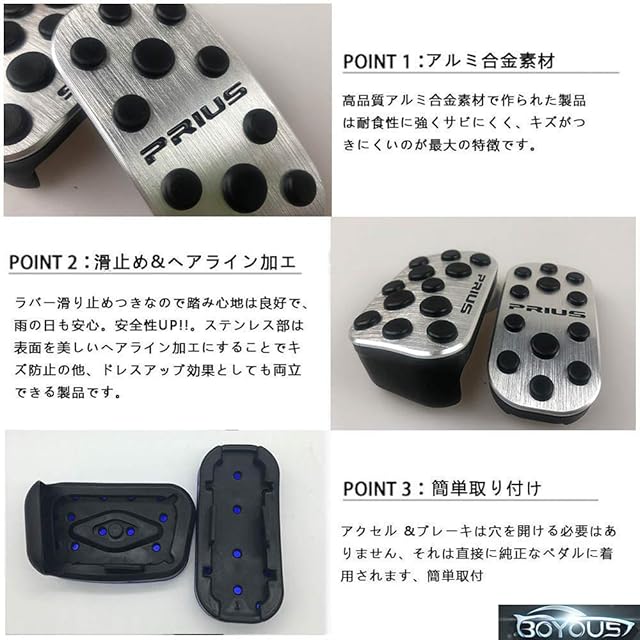 商品名:BOYOUS【最新型】トヨタ プリウス プリウスPHV 50系 前期/後期 専用設計 高品質 アルミ ペダル 工具不要 PRIUS ブレーキ アクセル カバー 防キズ 防汚れ 丸い滑り止めゴム 2点セット(シルバー)