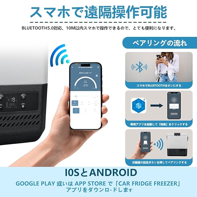 【アプリ操作可能】自社開発のアプリを利用して、すぐ庫内温度を確認することができ、温度調節や省エネモード設定、保護モード設定などの操作も可能です。接続範囲は3-5m程度です。ベットで冷蔵庫の操作もできます。※アプリでロック機能を利用したら、冷蔵庫のコントロールパネルがロックされます。その場合、冷蔵庫はアプリのみ制御できます。