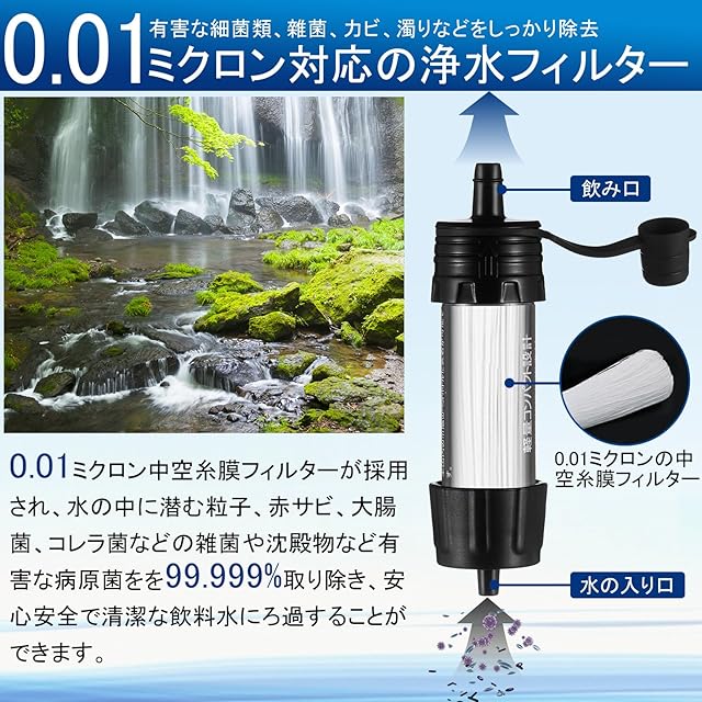 商品名:Kanoki 携帯浄水器 防災 5000L 濾過器 携帯用 浄水器 アウトドア 災害用 非常用 水筒 アウトドア用水 携帯ろ過器 ポータブル サバイバル 登山 キャンプ 防災グッズ
