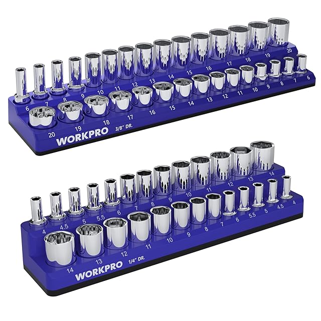 WORKPRO 磁気ソケットオーガナイザー マグネットソケットオーガナイザー マグネットソケットホルダー 2点セット 差込角6.35mm(1/4インチ)& 9.5mm(3/8インチ) ソケット収納用 メートル制 56個収納 (ソケット別売り)