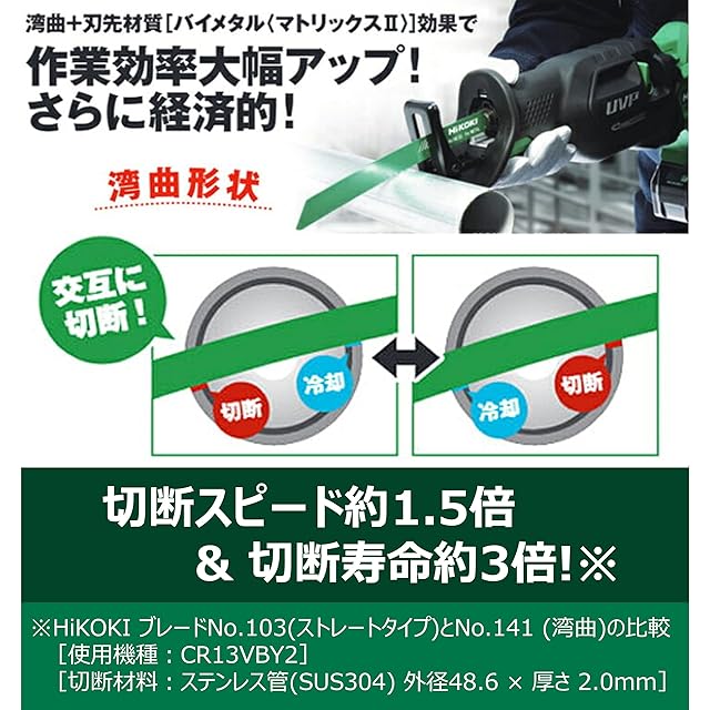 商品名:HiKOKI(ハイコーキ) 湾曲セーバーソーブレード レシプロソーブレード No.143 全長250mm 14山/インチ 5枚入 2mm以上ステンレス管材 0032-2604
