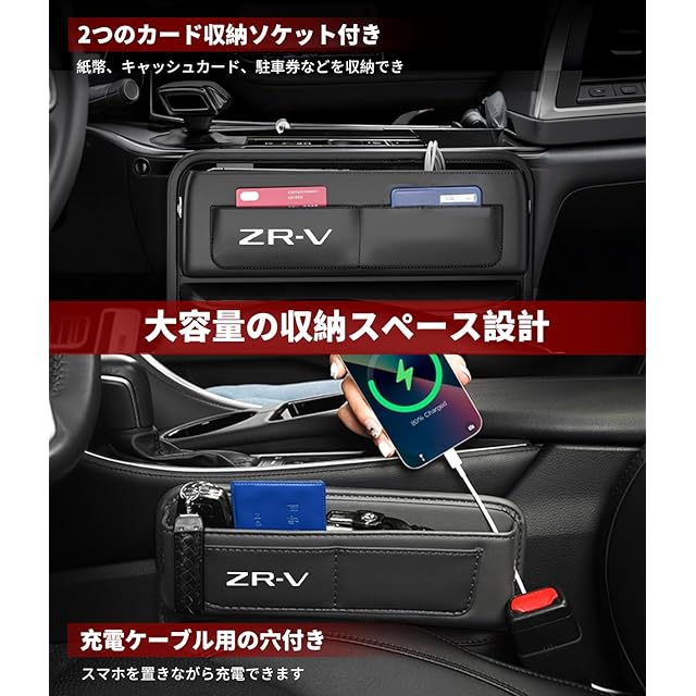 商品名:【ZR-V 専用】隙間収納ボックス ZR-V 専用ロゴ シートサイドポケット 車 ZR-V e:HEV X Z 対応 大容量 収納 小物入れ 落下防止 カー用品 車内 アクセサリー 便利グッズ 運転席+助手席用 ロゴ左右方向 2個セット (ブラック,ZR-V 専用)