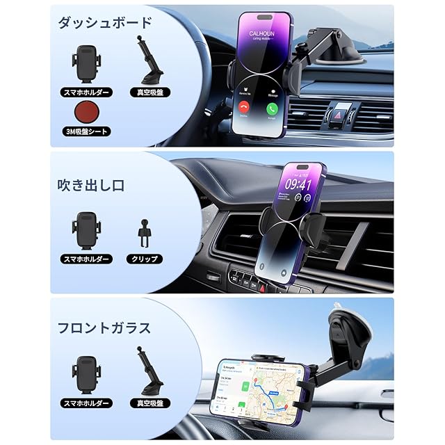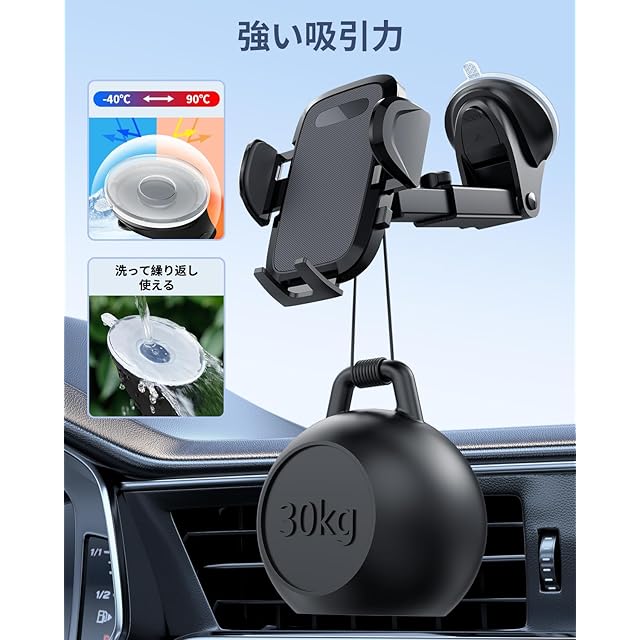 【超強力吸盤&安定性抜群】弊社の車 すまほほるだーは最新改良された超強力真空吸盤を採用、取り付け場所を自由に選べることで、ダッシュボードや窓など、平らな場所であればどこでも取り付けられます。 運転席だけでなく後部座席などに取り付けて子どもたちがスマホで動画を楽しめるように使えます。 また、携帯ホルダーの吸盤には耐熱性と耐寒性がある素材を追加しており、暑い時や極寒時で外れやすいの問題を有効的に防ぎます。 更に、吸盤が汚れにより吸引力が弱くなった場合でも、水洗い後に乾燥させることで吸着力復元でき、長い時間の使用を実現します。