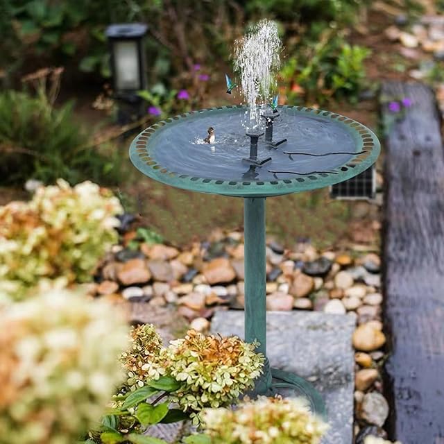 【仕様】単結晶 5Wソーラーパネル、接続ケーブル 3m ブラシレスポンプ(直流)、最大流量 180L/h、最大揚程 0.9m、4種類噴水ノズル切り替え可能。防水仕様:IPX8