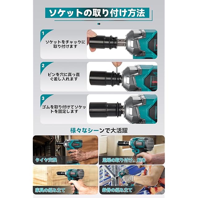 【幅広く使用&品質】このインパクトスパナは、建設現場、家庭用工具の修理、大工仕事、車の修理、タイヤの交換、家庭のメンテナンス、機械設備の建設などによく使用されます。弊社のすべての製品は1年間の品質を提供します。 ご不明な点がございましたら、お気軽にお問い合わせください。 弊社は24時間以内にお客様に満足のいく返信をします。