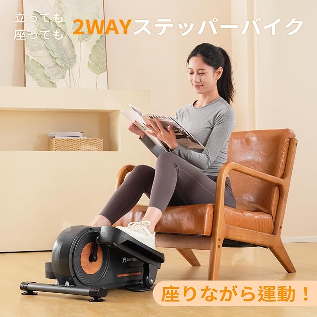 【楕円モーション】2WAYステッパーバイクは楕円上に足を動かすため、膝関節や股関節の可動域が少なく、関節に優しい運動器具です