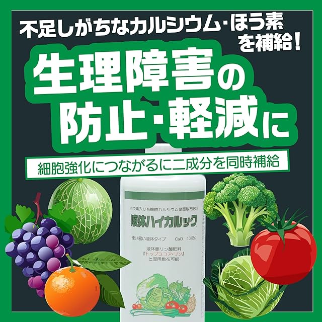 ほう素入り有機酸カルシウム液肥 液体ハイカルック 1.1kg 葉面散布 果樹 野菜 トマト ミニトマト ピーマン きゅうり ナス スイカ メロン カルシウム・ホウ素補給 チップバーン対策 生理障害対策 健全生育 液状肥料