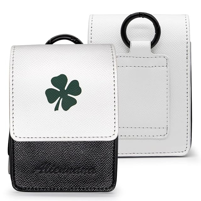 ゴルフレーザー距離計用収納ボックス キャリングケース 高級レザー製距離計測器ホルダーラッキークローバー仕様 計測器収納 マグネット開閉 携帯便利 軽量