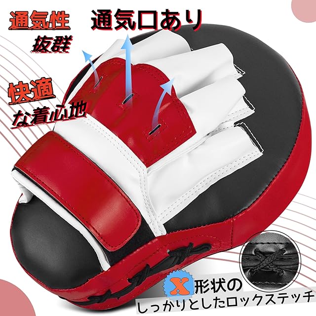 <b>このパンチングミットは</b><br><b>打つ側、受ける側両方の使用感を追求。衝撃吸収と確かな手応えを両立!</b><br>ハードな衝撃を吸収する厚さ増加構造で、強烈なパンチの衝撃を吸収し、<br>軽量でクッション性に優れています。<br>また、パンチングミットはパンチを受け止めやすい、湾曲型タイプとなっています。<br>その衝撃音と打撃感は、初心者から上級者に至る幅広い選手層に定評があります。実際に音と感触を体感してください。<br>総合格闘技、空手、柔道、フィットネスなど、トレーイングの際に拳を保護します。<br><br><b>製品仕様</b><br>●サイズ:40*26*12cm<br>●表素材:PU革<br>●裏素材:高密度ポリウレタン<br>●重量:0.41kg<br><br><b>こちらのパンチングミットを選ぶポイント!!</b><br>★パンチを受けやすくした湾曲構造<br>★持ち手が握りやすく、トレーナーの負担を軽減!<br>★強固な縫製で耐久性も十分。<br>★軽量ながら強烈なパンチングからの衝撃を高効率で吸収。<br>★通気性な素材で快適で乾燥した状態に保ちます<br>★クッション性・デザイン性も抜群!<br><br><b>確実にパンチを捉える!!</b> <br>パンチングミットにカーブを描くことで今まで以上にパンチに力を入れることが可能でプロの衝撃に耐えることができます。<br>この湾曲により、パンチングミットはあらゆる角度からの打撃を吸収し、しっかりと受け止めることができます。<br>パンチングミットの自然な曲線フォルムが打ち損じを防ぐので、初級者から上級者まで幅広くご使用可能!トレーニングのバリエーションを増やすことができます。パンチの精度が上げられる軽量パンチングミットす。<br><br><b>衝撃をしっかり吸収!!</b><br>パンチングミットは厚みがあり、衝撃吸収に優れた素材を使用しているため、手応えが良い上に、持ち手の負担が少ないミットです。<br>厚みの高密度クッションが強烈なパンチを吸収し、受ける側の衝撃を軽減する構造になっているので、体を保護することができます。<br><br><b>本格パンチングミット</b><br>このパンチングミットはボクシング、総合格闘技、空手などのパンチを中心としたトレーニングをする方に適しています。<br>軽量のパンチングミット二個セットです。