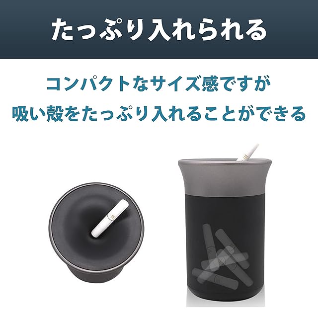 たっぷり入れられる:コンパクトなサイズ感の灰皿ですが、吸い殻をたっぷり入れることができます。灰皿の下部分の直径は約6.7cmとなっています。