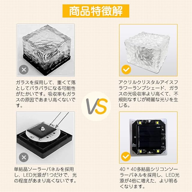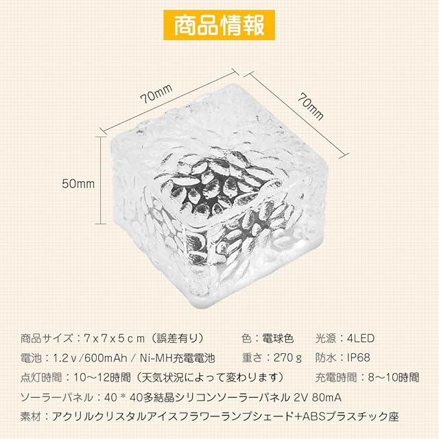 商品名:Yumjoy ガーデンライト ソーラーライト 屋外 埋め込み式 IP68防水 アクリルランプシェード アイスフラワー 景観照明 自動点灯/消灯 取付簡単 玄関先/庭/芝生/車道/歩道 電球色 4個セット