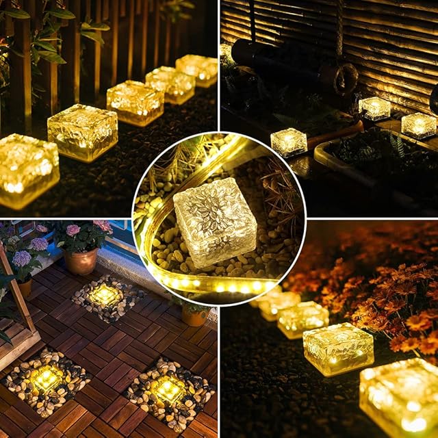 Yumjoy ガーデンライト ソーラーライト 屋外 埋め込み式 IP68防水 アクリルランプシェード アイスフラワー 景観照明 自動点灯/消灯 取付簡単 玄関先/庭/芝生/車道/歩道 電球色 4個セット