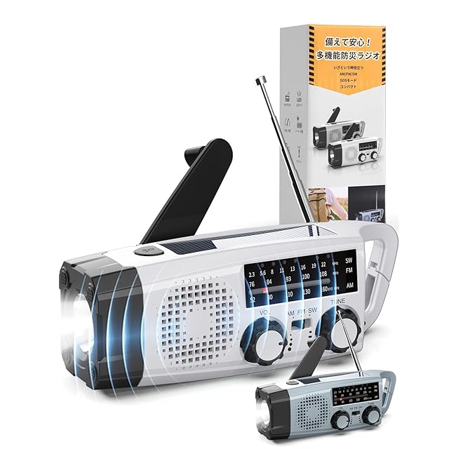 商品名:SARELLIT 防災ラジオ 手回しラジオ AM/FM/SW 多機能 手回し充電 ソーラー充電 TYPE-C充電 懐中電灯 SOSアラーム 小型 2000mAhバッテリー 取り外し可能 軽量 地震 台風 津波 停電対策 防災グッズ 日本語取扱説明書付き (ホワイト)