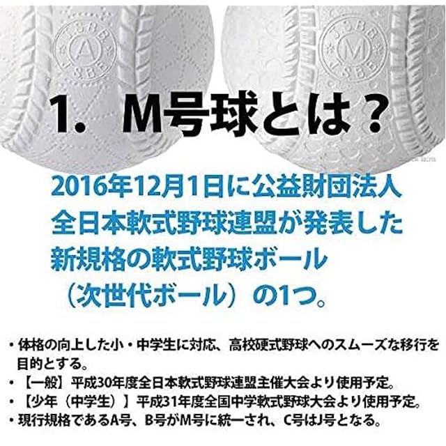 ●軟式用新公認球。M号サイズ。<br> ●メーカー品番:MR-nball-M<br> 中学生の高校硬式野球へのスムーズな移行と、硬球がメインの海外への普及を目的とし新軟式ボールが発表されました。<br>現在の軟式ボールよりわずかに大きく硬くなり、低く弾むため硬式に近い感覚でプレーができるようになります。<br> ※一般軟式は平成30年度全日本軟式野球連盟主催大会より使用予定<br> ※中学軟式は平成31年度全国中学校軟式野球大会より使用予定<br><br>※※およそのサイズ・重量 0×0×0 0g