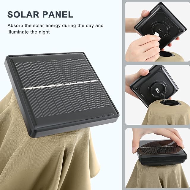 ✅ご注意:本製品はパラソル本体のみ、ベースは含まれておりません。ご使用前に必ず①ソーラーパネルの接続プラグが確実に接続されているかご確認ください。②日中は十分に充電させてください。※上記を確認いただいても照明が点灯しない場合は、お手数ですがメーカーまでご連絡ください。