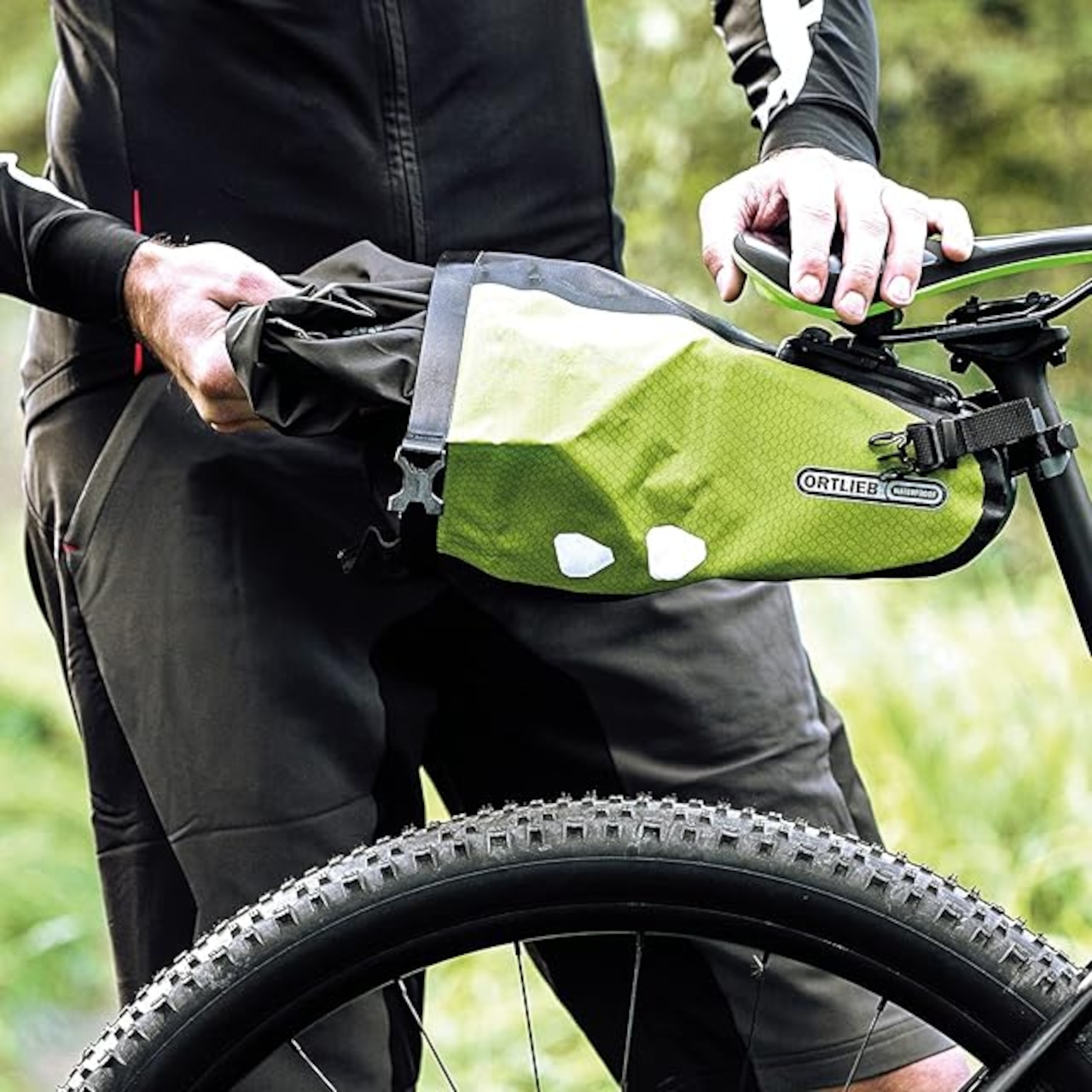 防水・防塵性の高いロールクロージャーを採用し、後輪からの水や泥はねからしっかりと荷物を守ります。 1.6Lは予備チューブや携帯工具のほか、脱いだ上着を詰め込めるほどの収納力。 大容量な4.1Lは、ロングライドや1泊ツーリングにも最適なサイズ。 サドルレールに取付けるアタッチメントはワンプッシュで着脱が可能です。 バッグ内部のナット頭部はフラットで、物の出し入れがしやすく、リアライトを取り付けるループとリフレクター付きで夜道の走行も安心です。 ※アタッチメントは従来のサドルバッグと互換性があります。 OR-F9424 H14xW21xD28cm/4.1L/■JANコード:4013051052252 ブラックマット 260g/2kg/IP64/PVCfree PS21/PS21R