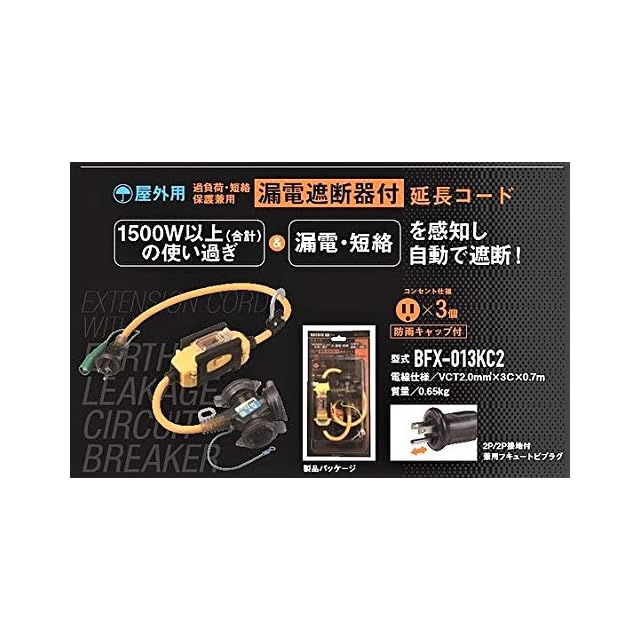 商品名:ハタヤ(HATAYA) 屋外用 過負荷・短絡保護兼用 漏電遮断器付延長コード 0.7m HATAYA x GranGear コラボ商品 BFX-013KC2