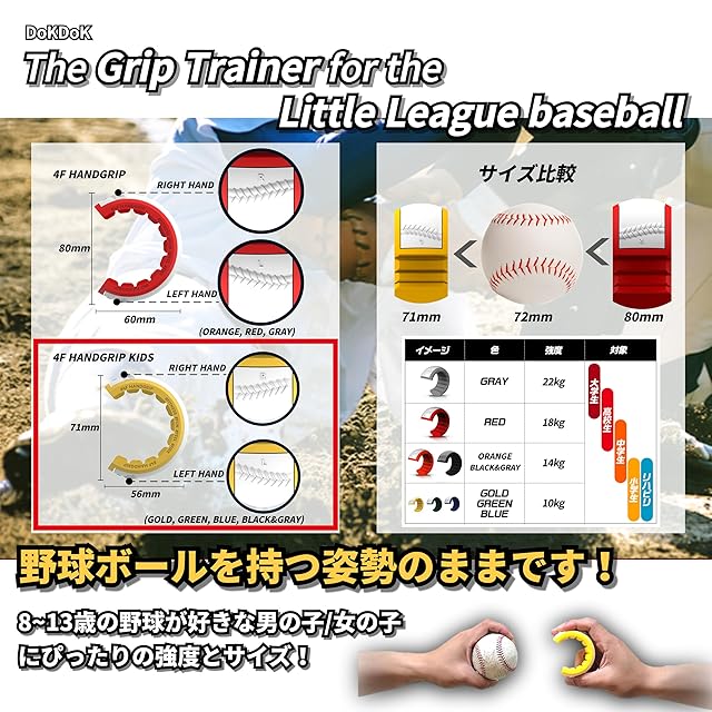 DoKDoK 4F HANDGRIP KIDS 強度選択 10~14kg ボール投げに必要な筋トレ握力の強化 トレーニング 幼少年用 (3. Blue(10kg))