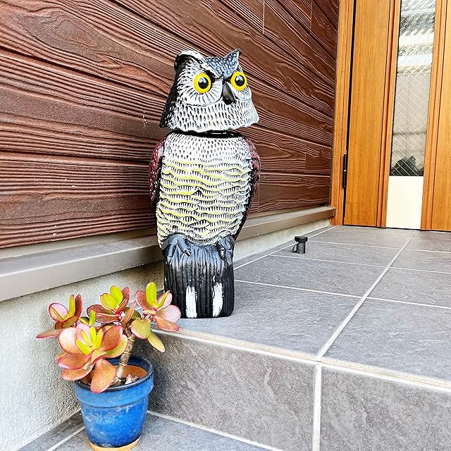 ONESORA フクロウ置き物 縁起物 フクロウ お庭のお飾りに お部屋のお飾りに 鳥よけフクロウ 害鳥よけフクロウ 本物そっくり リアルな目玉で威嚇 鳥害対策効果もあり お飾りや鳥避けなどの幅広くご使用可能 (首振りフクロウ)
