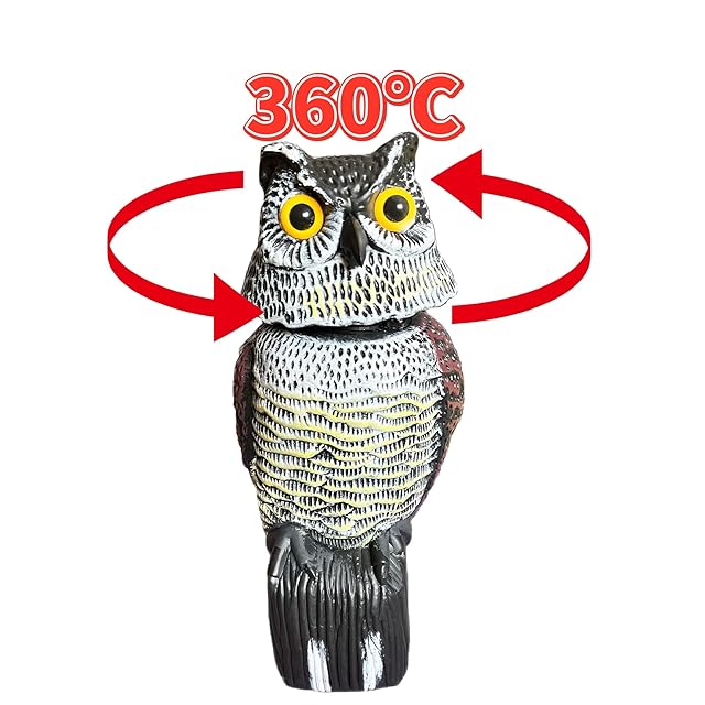 風で頭がゆらゆらと揺れて、リアルな動きで本物とそっくり、鳥よけの効果が抜群です。 縁起物フクロウは、お部屋の飾りやお庭の飾りとしてはもちろん、ゴミ置き場や畑、果樹園などで鳥よけ対策グッズとしてもご活用いただけます。 風で首が360度回転可能、よりリアルで鳩よけ、カラスよけ、スズメよけ、ムクドリよけ、ヒヨドリよけに効果が抜群。 ポリエチレン樹脂製なので、丈夫で長くご使用いただけます。