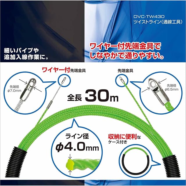 商品名:SK11(エスケー11) DEVICE ツイストライン (通線工具) Φ4.0mm×30m ケース付 DVC-TW430