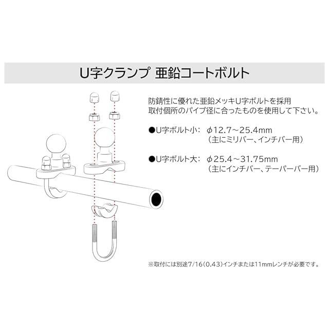 ラムマウント(RAM MOUNTS) ベース部 U字クランプ φ12~Φ31に適合 ブラック RAM-B-231ZU
