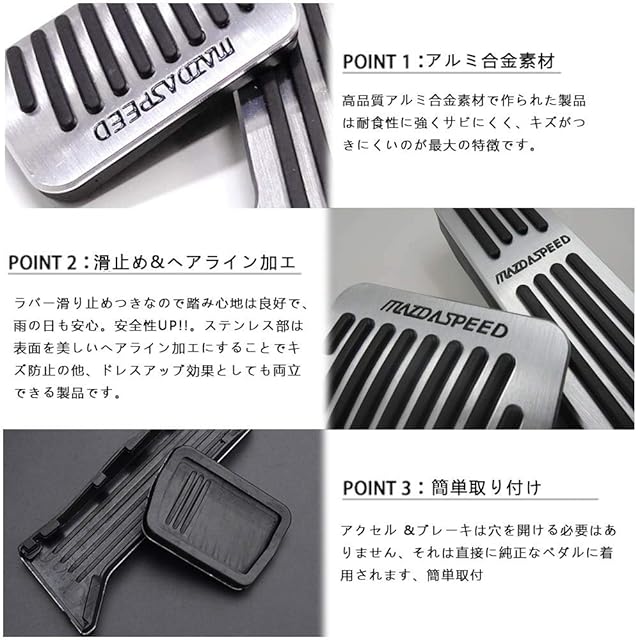 商品名:Boyous 【一年】マツダ 専用 アルミ ペダル フット シルバー 3点セット 適合多数 CX-3 DK系 CX-5 KE/KF系 CX-8 KG系 デミオDJ系 アクセラBM/BY系 Mazda6 アテンザGJ系 等【日本語説明書付】