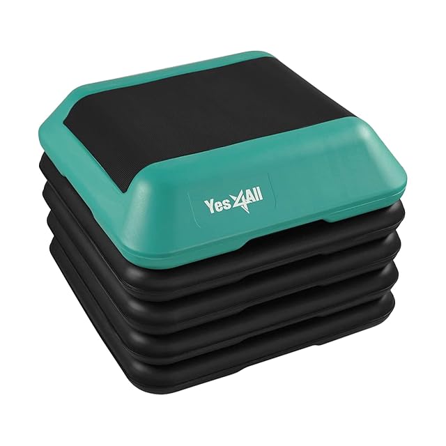 イエスフォーオール(Yes4All) エアロビクスプラットフォーム シングルステップ ブラック/グリーン 41×41cm ライザー4点付き 5段階の高さ調節 踏み台昇降 ステップ台 滑り止め 【日本正規輸入品】Q5HV