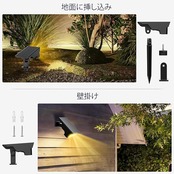 【製品の仕様】製品の仕様:➀LED個数:6個➁LEDの色:電球色➂3段階調光機能➃常時点灯モード/点滅点灯モード/呼吸点灯モード➄配光角:25°➅防水レベル:IP65➆ソーラーパネル:6V/0.75W➇サイズ:全長:20cm(地面と近い位置から照らす)➈設置方法:壁に取付/地面に差し込む(2way)➉使用用途:庭、ガーデン、玄関、花壇、ベランダ、階段など屋外のあらゆる場所にご使用頂けます。防犯や避難などにも役に立ちます。庭が夜でも明るくなり、防犯性が高まったと感じますので、庭が暗い方にはお勧めします。夜の花や木々、エクステリアを様々な表情に演出します。おしゃれな雰囲気を演出できます。樹木をライトアップして、一気に外観や庭の雰囲気を変えることができます。夜のお庭をお楽しみください。