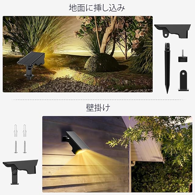商品名:MEIKEE ガーデンライト ソーラー ソーラーライト 屋外 防水 ガーデン ソーラースポットライト パスライト 明るい 2700K 電球色led IP65防水 光感センサー 高輝度/中輝度/低輝度モード 3種類点灯モード 自動点灯/消灯 庭園灯 ガーデンニングライト 庭 芝生 車道 植木 歩道 駐車場 玄関先 ガレージ 防犯対策 景観照明 地面挿入 壁掛け【2個セット】適格請求書発行ok