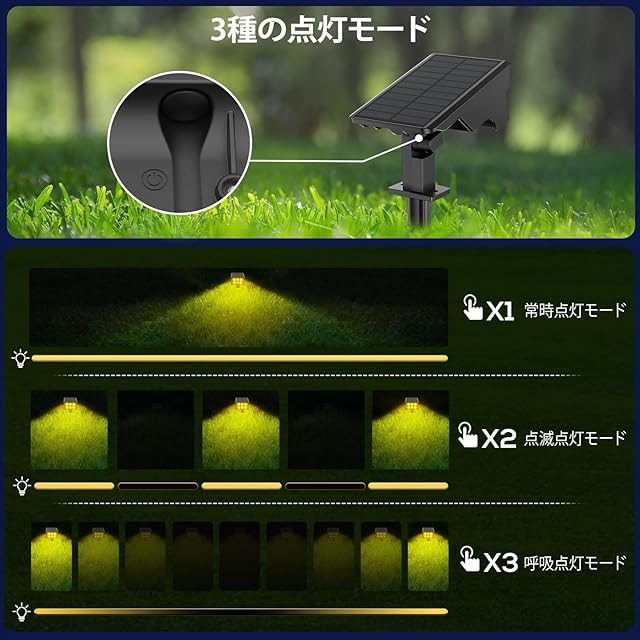 商品タイプ:高輝度ソーラーガーデンライト・2個セット・3段階輝度調整&3種類点灯モード